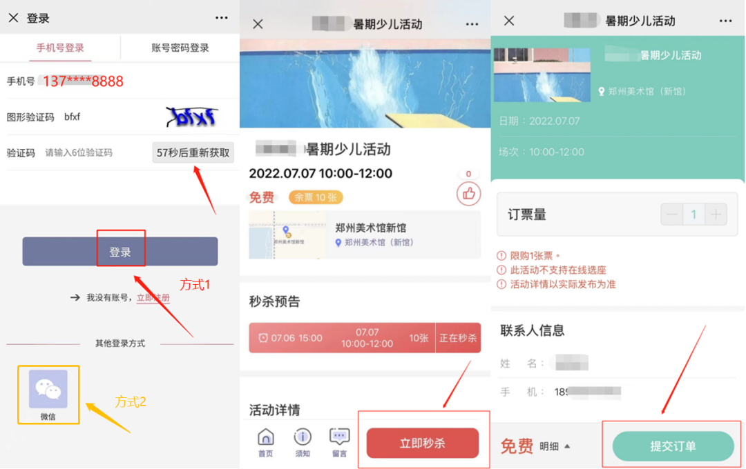 预订成功后会收到预订成功短信,凭借预约成功短信参加活动。